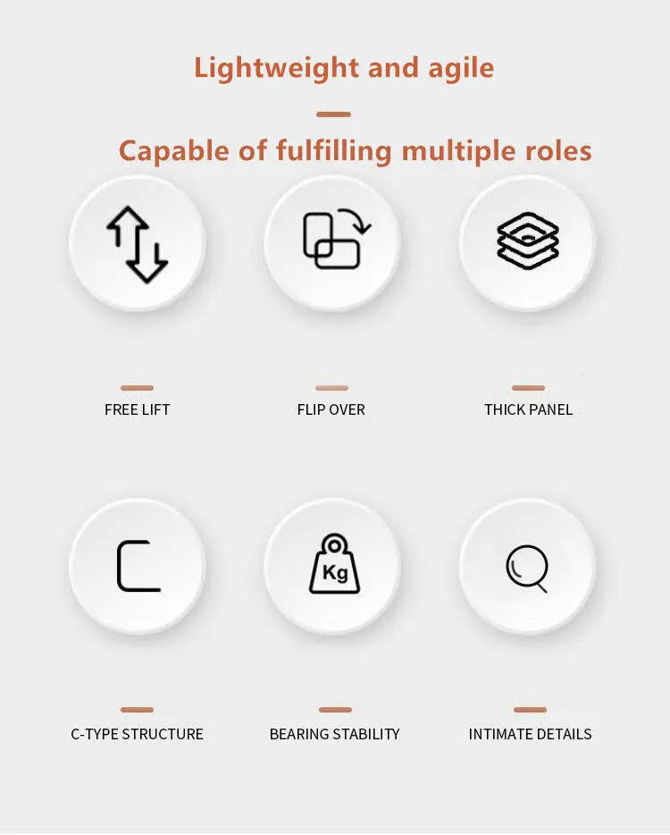 An adjustable C-shaped side table with flip design, perfect for use as a laptop table, coffee table, or end table. Features adjustable height and tiltable desktop for maximum versatility.