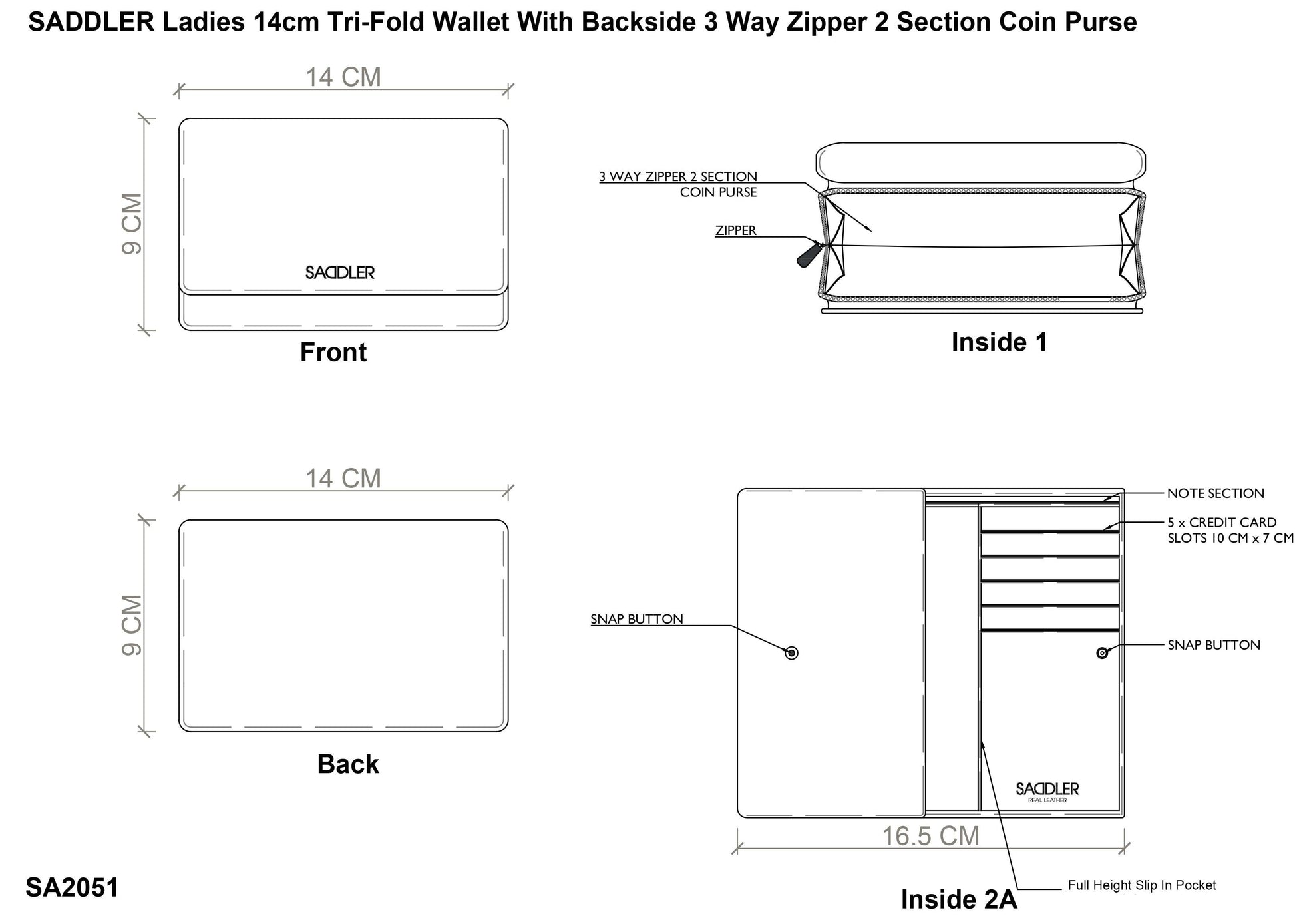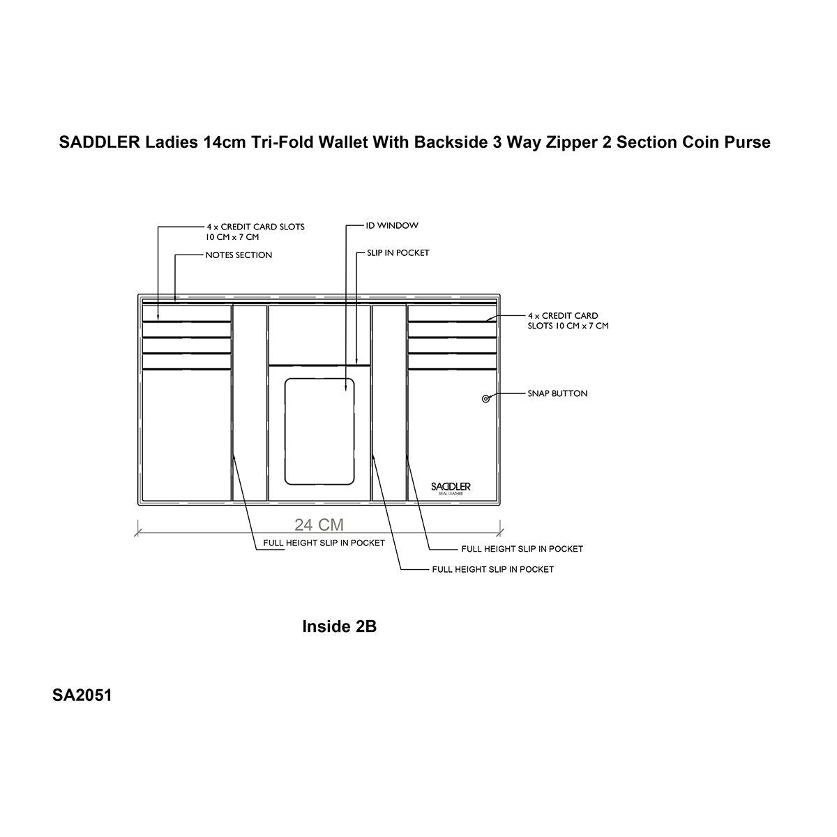 • Rear Zip Coin Pocket: Secure coin compartment