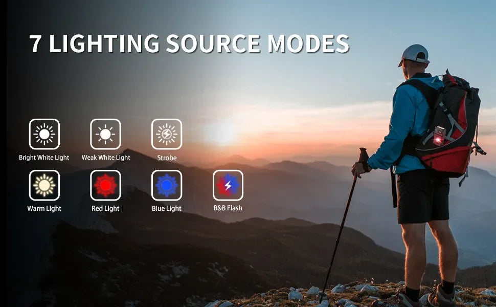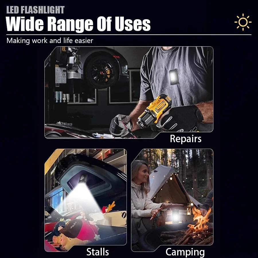 - COB Side Light: Additional side lighting provides wide-angle illumination