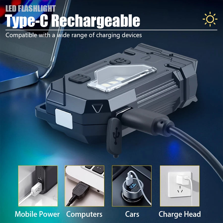 Stay prepared with this premium mini USB rechargeable LED flashlight featuring magnetic tail attachment and bright illumination. This portable camping lantern combines powerful LED technology with convenient COB side lighting, making it perfect for emergencies, outdoor adventures, and everyday use.