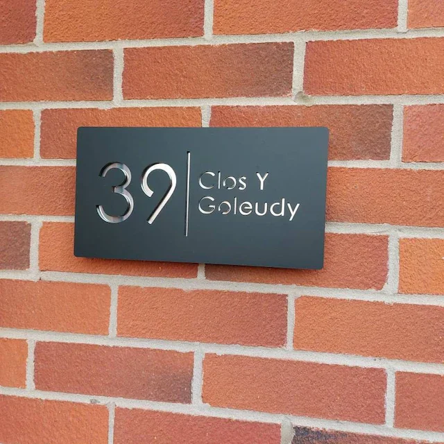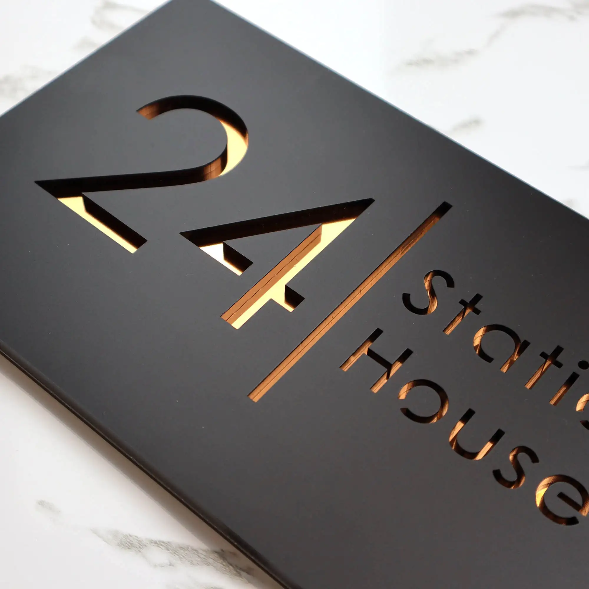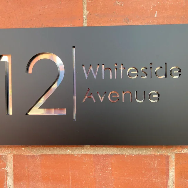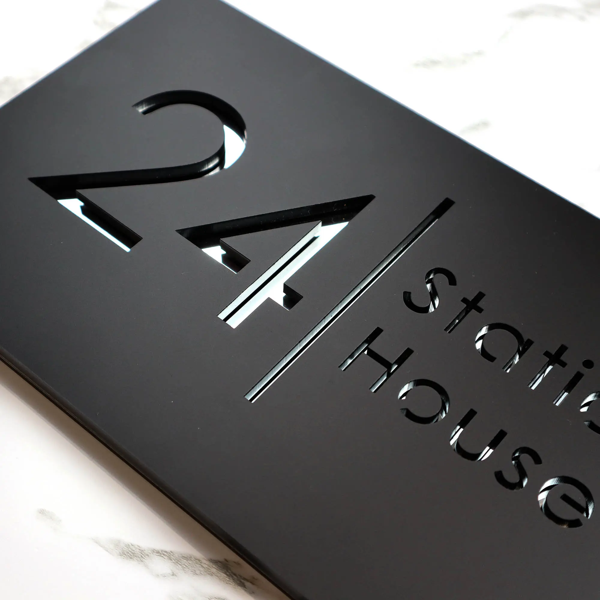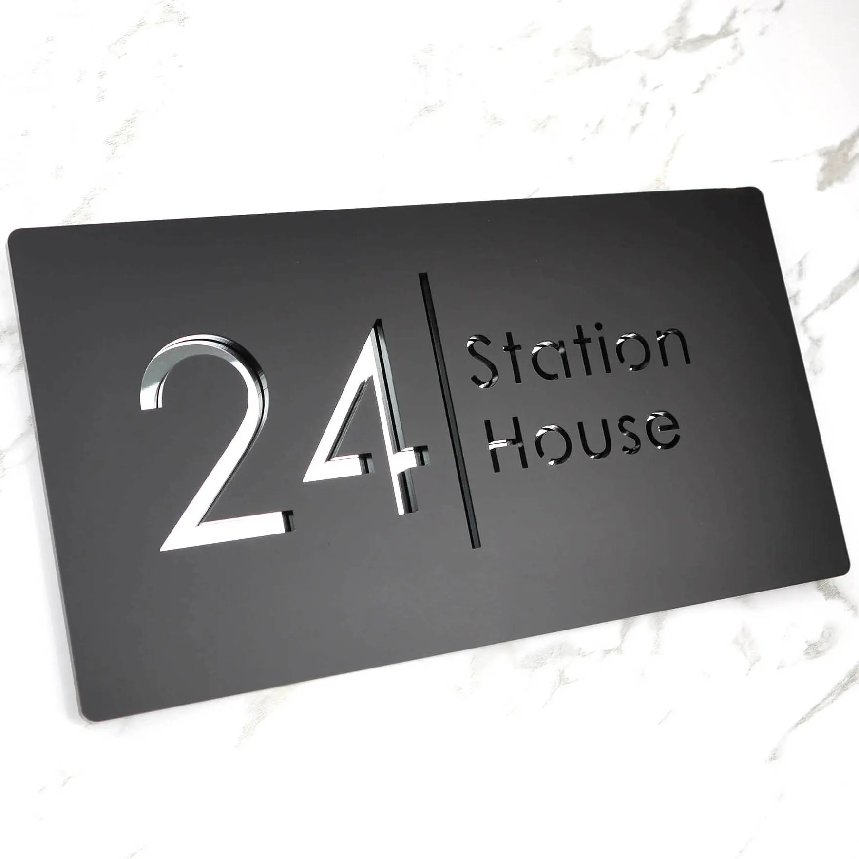 Placa personalizada con grabado láser de acrílico negro mate/gris mate para número de casa y número de calle para exteriores