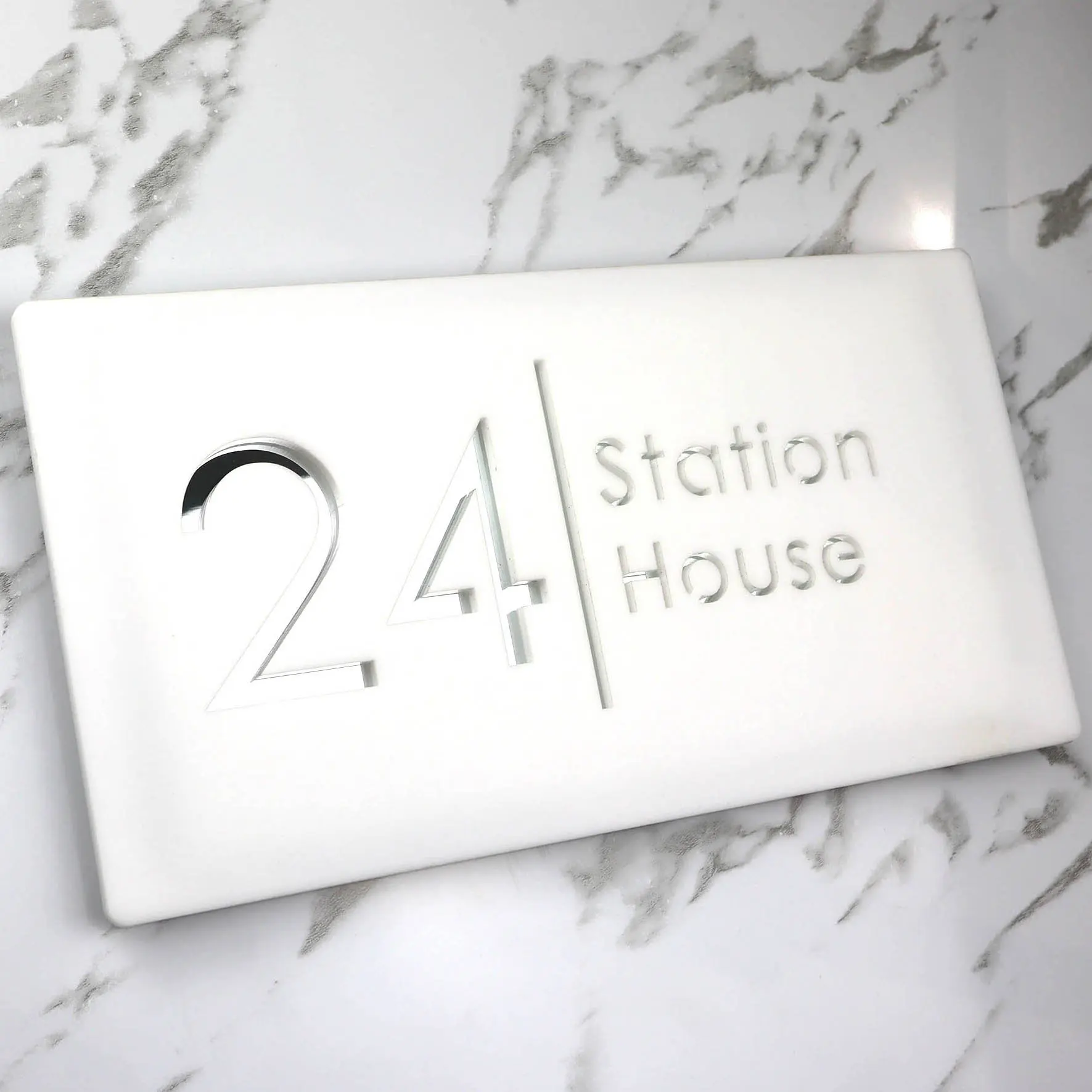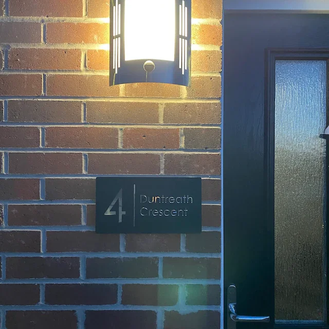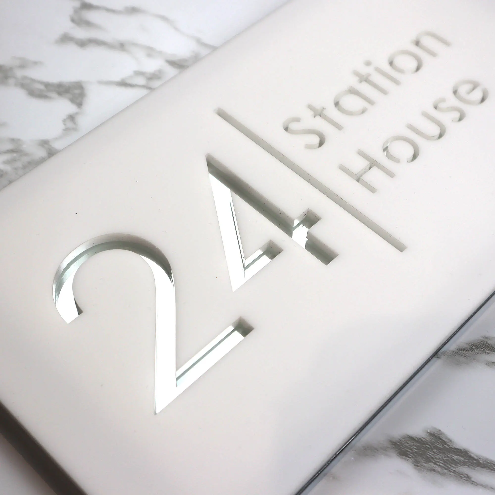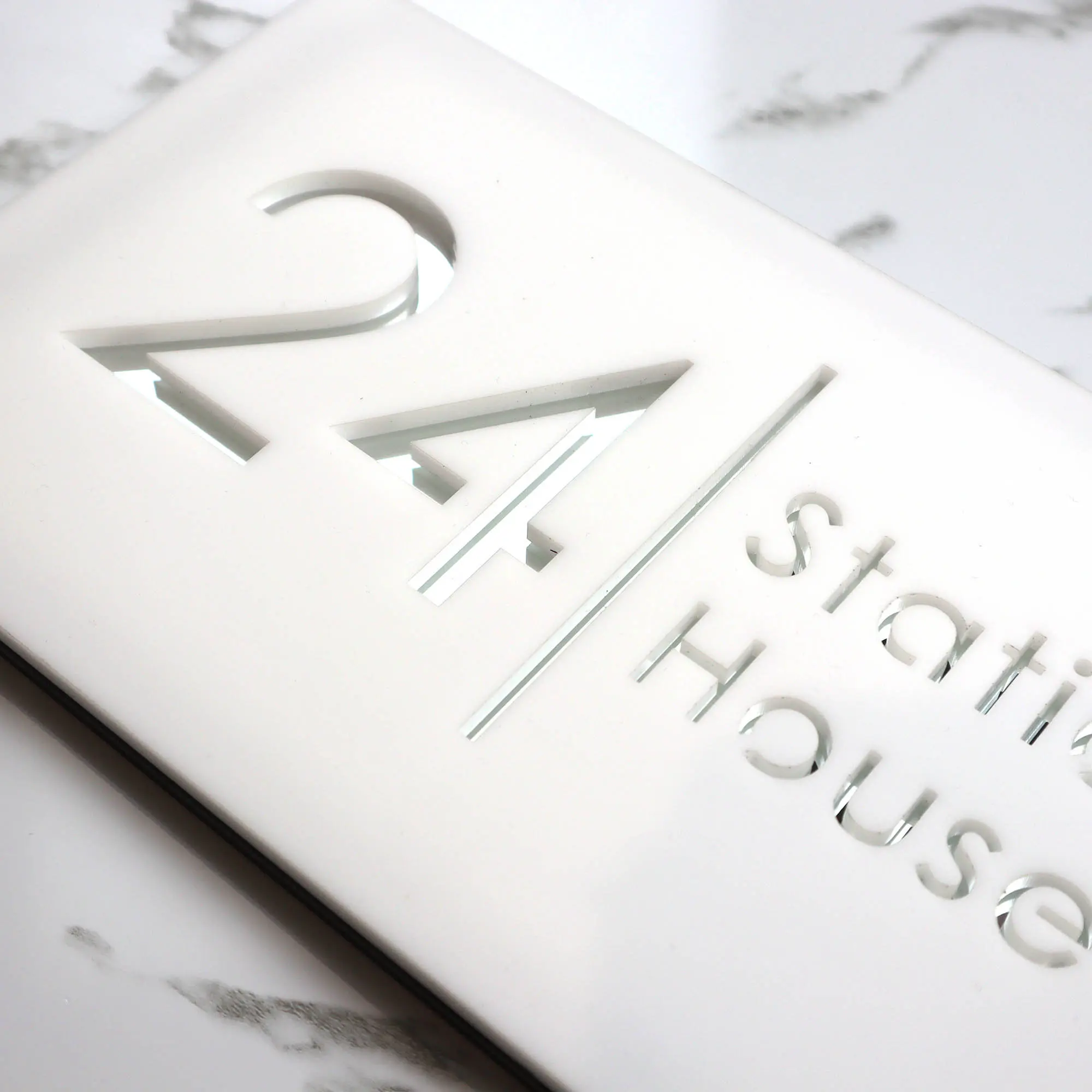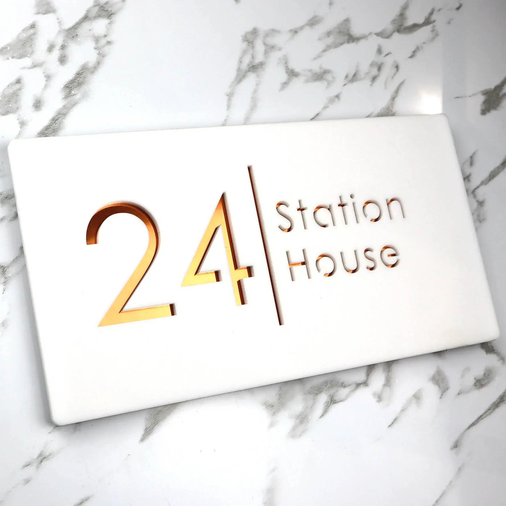 Placa personalizada con grabado láser de acrílico negro mate/gris mate para número de casa y número de calle para exteriores