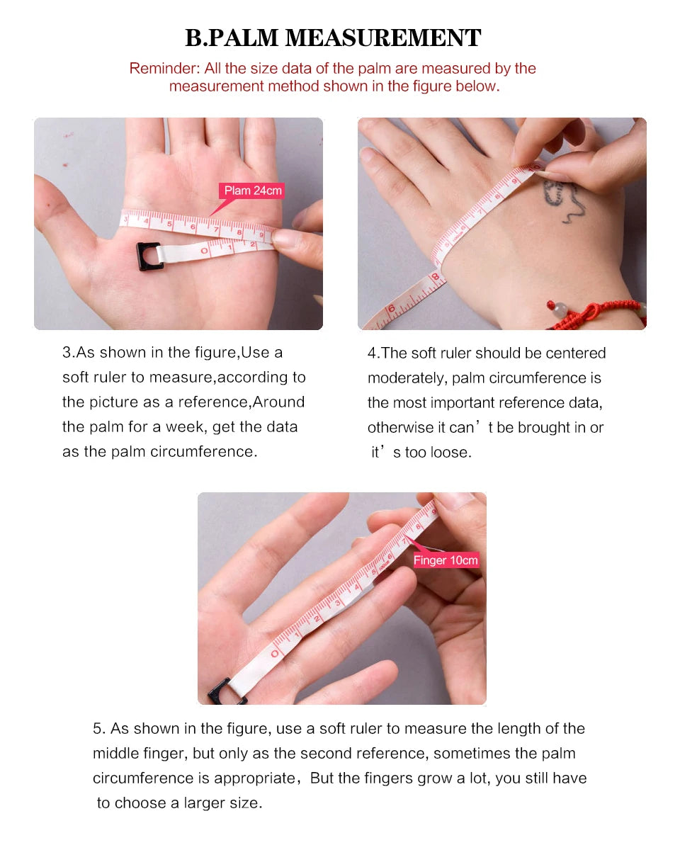 Mide la circunferencia de la palma de tu mano para encontrar tu talla perfecta. Si estás entre dos tallas, elige la más grande.