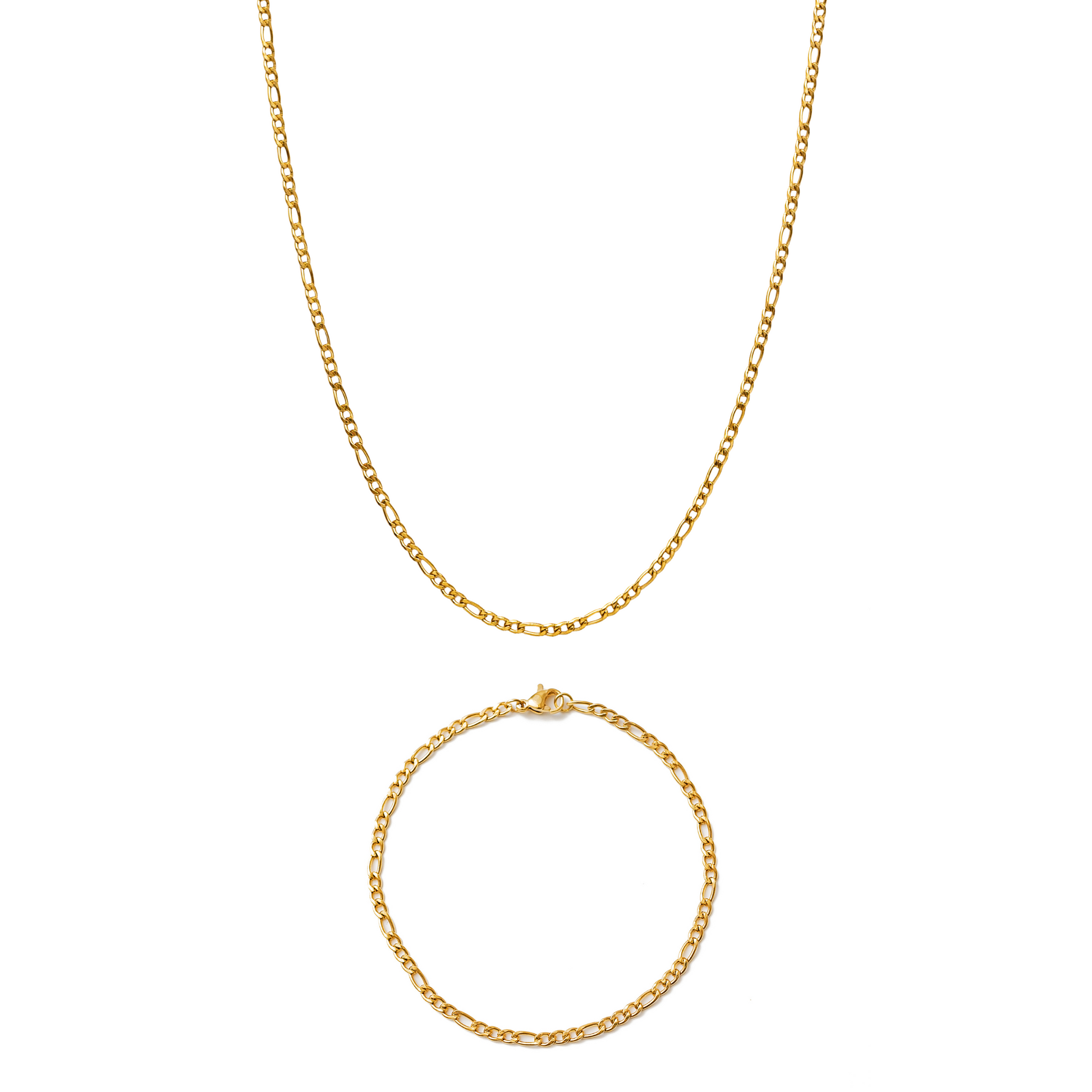 Realza tu estilo con el Conjunto Figaro en Oro, que incluye una clásica pulsera Figaro y una cadena a juego. Este elegante conjunto aporta un toque cálido y lujoso a cualquier look, perfecto tanto para el día a día como para ocasiones especiales. Disfruta de un diseño atemporal y una sofisticación versátil en un hermoso conjunto.