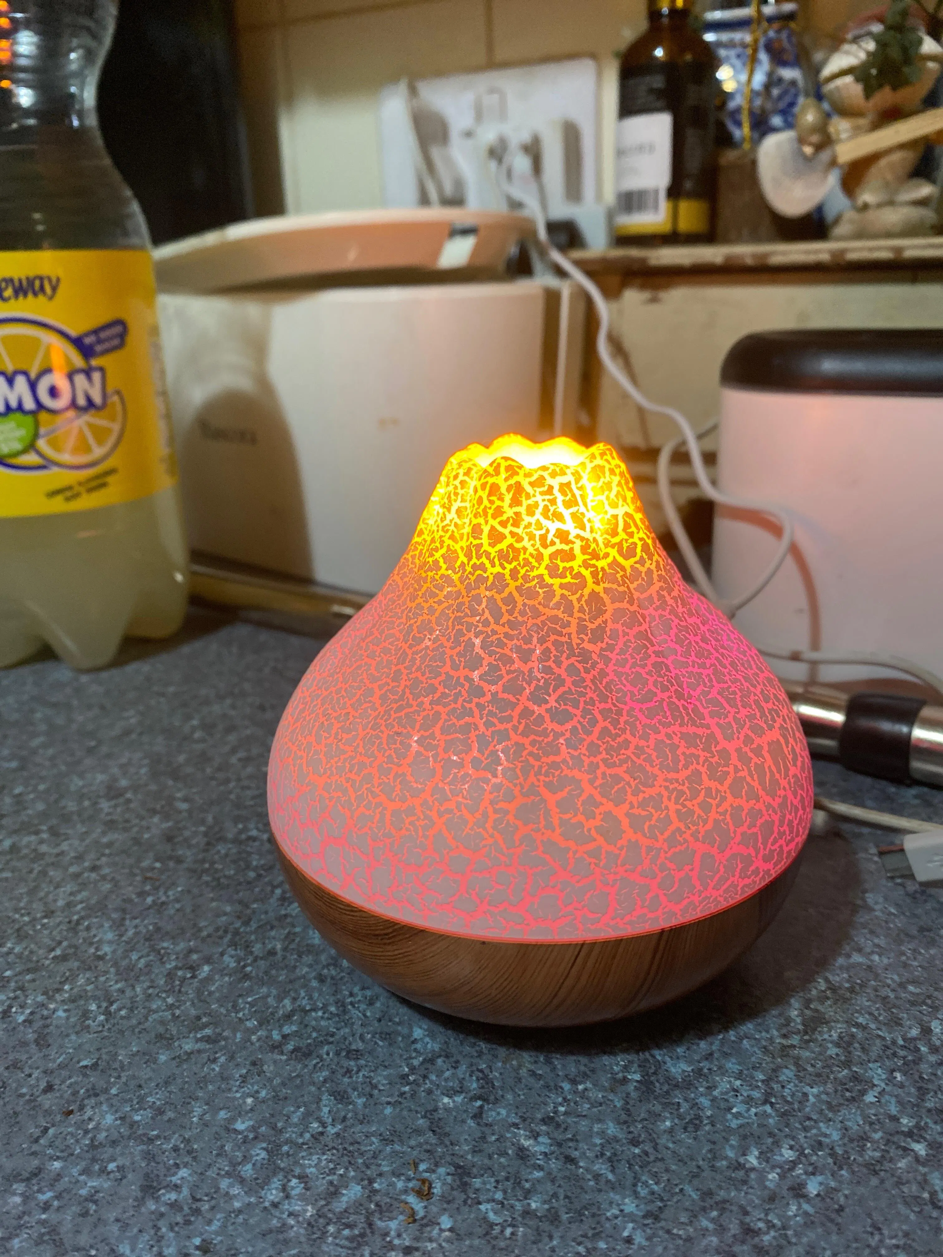 - Volcano design with colorful LED night light