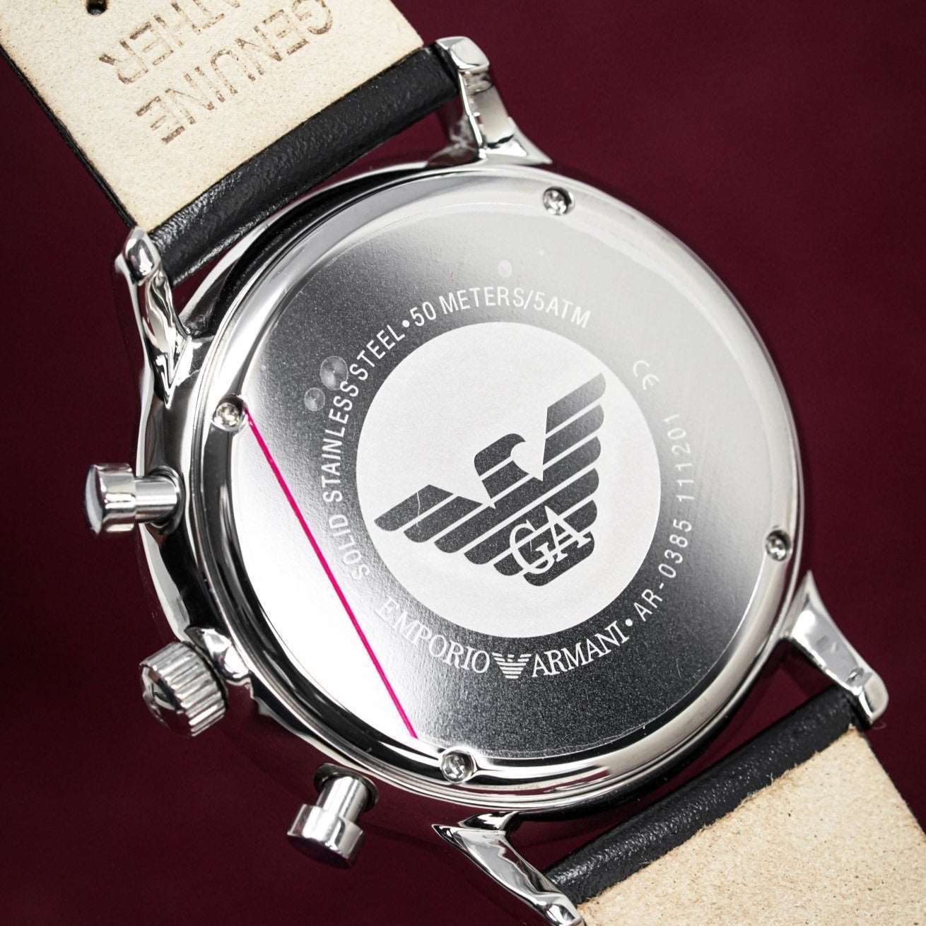 Emporio Armani AR0385 Men's Chronograph Watch - Black Leather