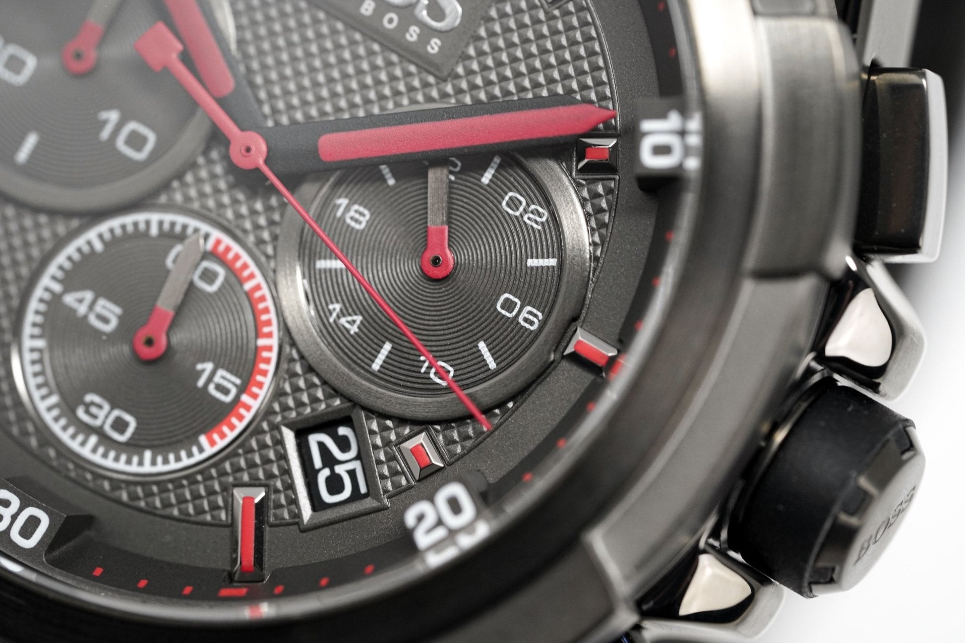 Japanese Made Quartz Chronograph Movement. Running Seconds. 30 Minute Counter. 24 Hour Indicator. Date.
