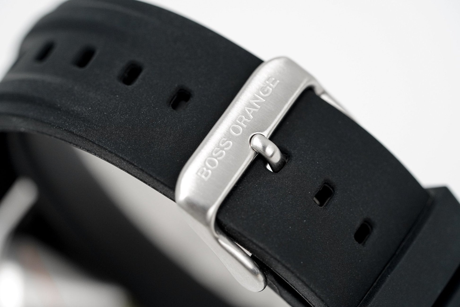 Black Rubber Strap With Stainless Steel Pin Buckle.